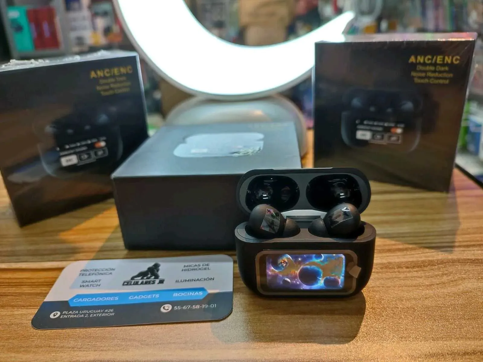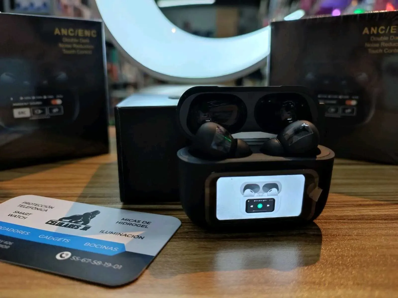 Nuevos audífonos con pantalla táctil cancelación de ruido real puedes subir y cambiar la música también puedes cambiar modo anc enc y botón selfie.