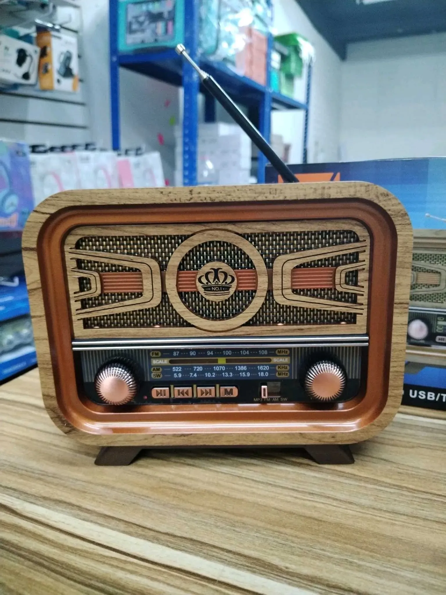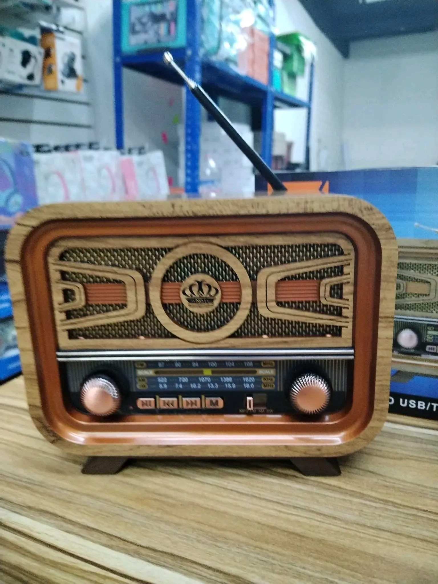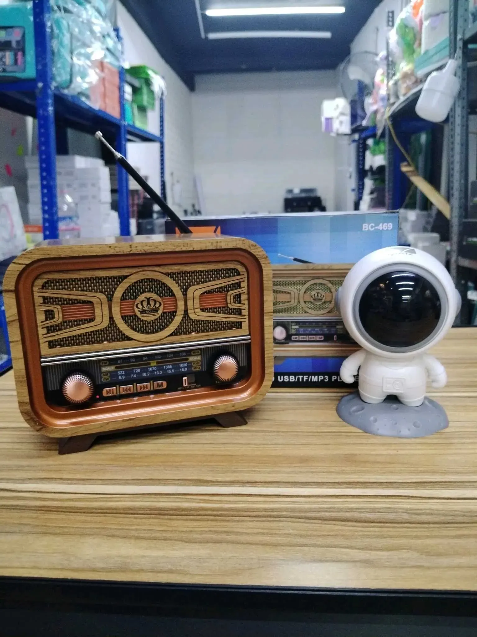 Disfruta de un sonido potente y estilo retro con la bocina recargable BC-469. Sus acabados en madera le dan un toque elegante a cualquier espacio. Perfecta para escuchar tu música favorita donde quieras. ¡Hazte con la tuya hoy mismo!