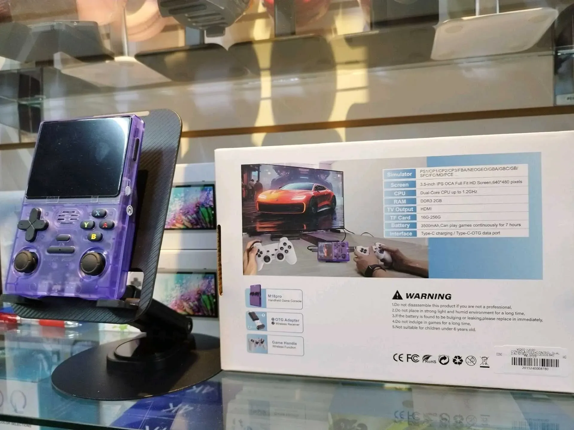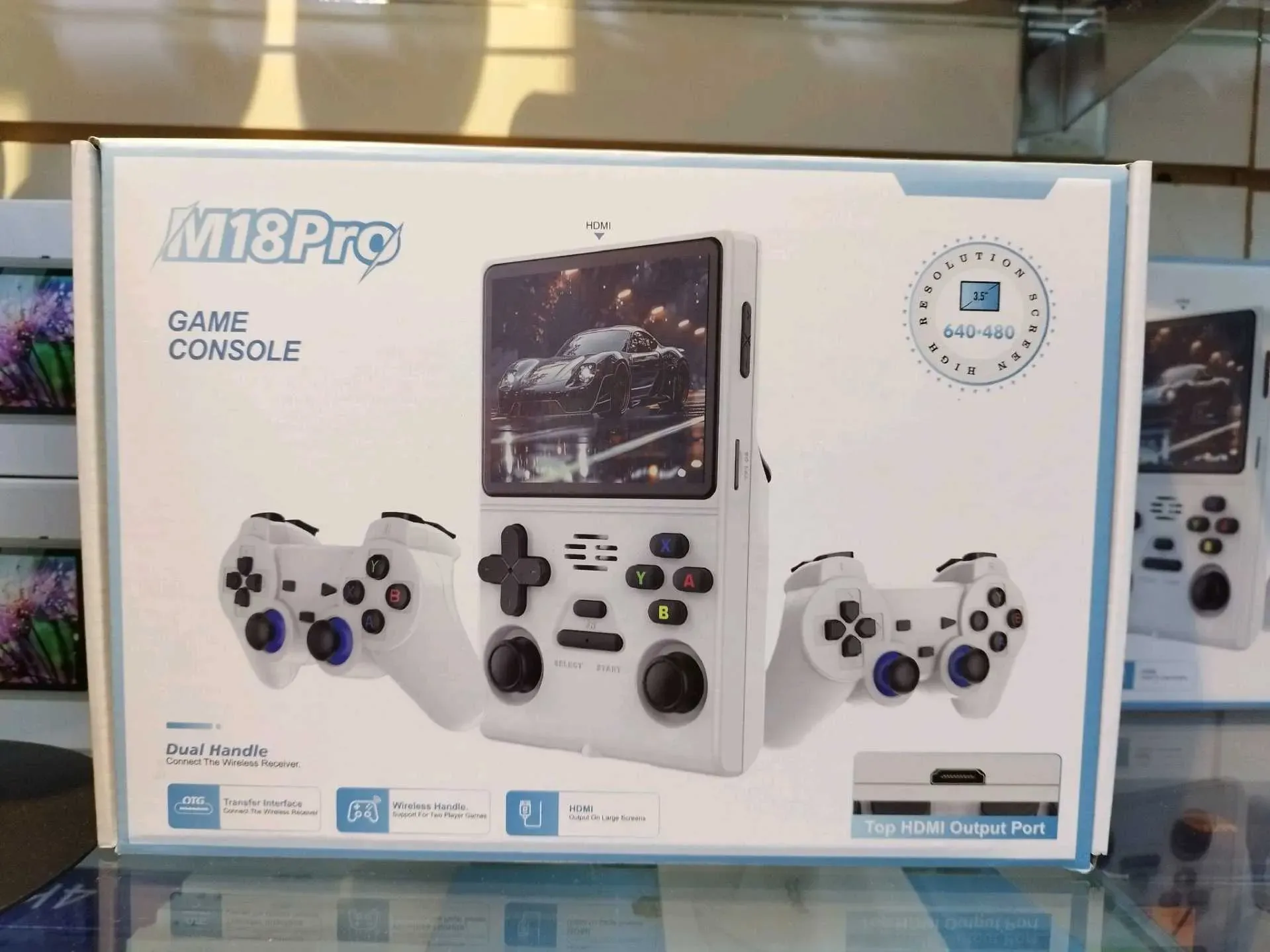 Increíble consola portátil m18 Pro simulador de videojuegos pantalla de 3.5 pulgadas full fit HD dual core cpu 1.2 ghz ram 2 gb conexión HDMI almacenamiento de memoria micro SD 64 GB batería de 3500miliamperes